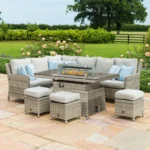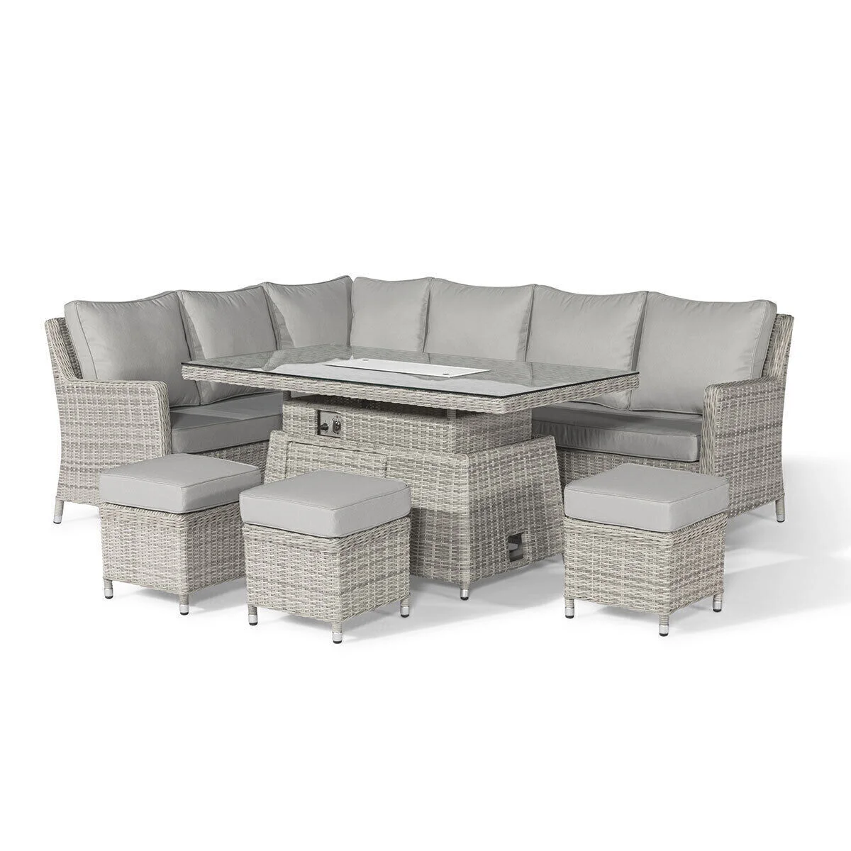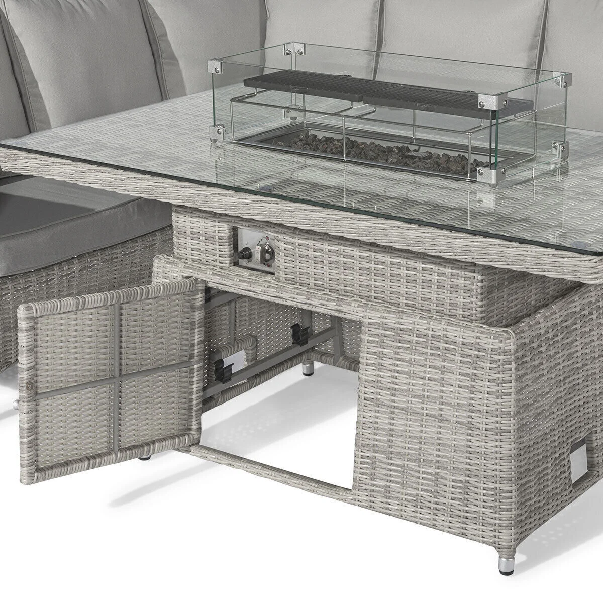 Oxford Corner Rattan Dining Set with Fire Pit Rising Table