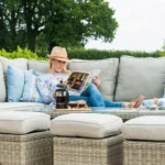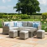 New to our Oxford collection, we have designed a new stylish rattan fire pit dining table. The table features our favourite integrated fire pit system but also now includes the option to transfer the table from outdoor dining to coffee table. Our rising table feature is very popular across all our rattan garden furniture ranges so we have now combined both the rising table feature and fire pit option. The large L shaped corner sofa provides plenty of space for your friends and family, to entertain and enjoy large garden feasts. Transform your garden with the outdoor corner sofa and new combined features, relax in the sun with a book or light the fire pit into the dusk evenings. Extend your hours of summer with the best designed outdoor garden dining table!