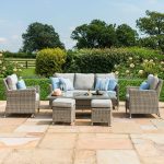 The Oxford Sofa Dining Set with Ice Bucket and Rising Table is a refreshing way to dine in comfort. The three-seat sofa and two armchairs are deep and low slung, the rectangle table includes an ice bucket insert in the middle. To allow even more versatility this set includes the rising table, allowing you to go from dining to lounging. The set also includes two stool style cushioned seats so those extra guests are able to enjoy the meal in luxurious comfort