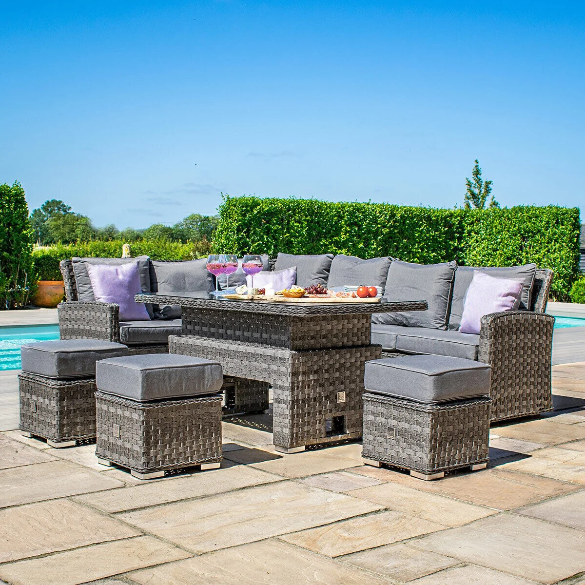 Oxford Corner Rattan Dining Set with Fire Pit Rising Table