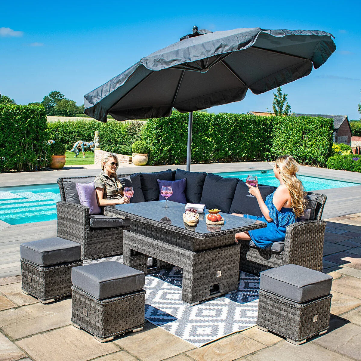 Ascot Square Rattan Corner Dining Set with Rising Table & Weatherproof Cushions